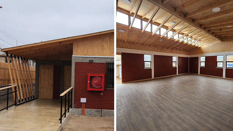 Descripción: Construcción de muros de albañilería armada, con estructura de techumbre de madera, cadenas y vigas de H.A, conexiones interiores de luz, agua potable y alcantarillado.