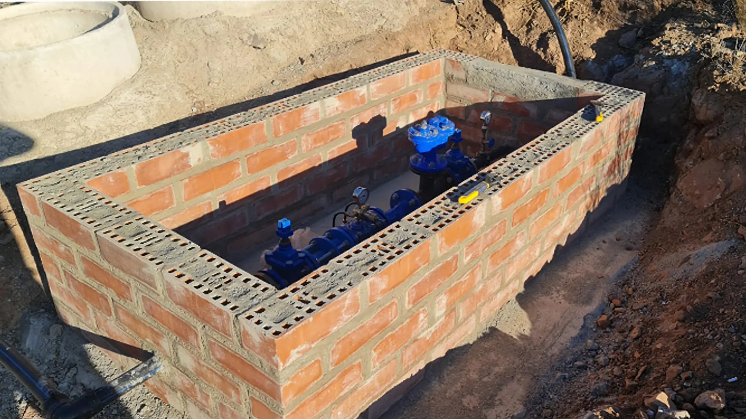 Descripción: Instalación de nueva cañería en 800 m de HDPE 2″, implementación de cámara de válvulas, suministro de 1 válvula reductora de presión DN-50 BB, suministro de 1 filtro tipo canastillo DN-50 BB, 2 manómetros gliserina 0 16bar 1/4 acero inoxidable, suministro de 3 válvulas de corte DN-50 BB, instalación de válvulas de paso y venteo, fabricación de válvula despiche y el suministro e instalación de 9 arranques de agua potable.