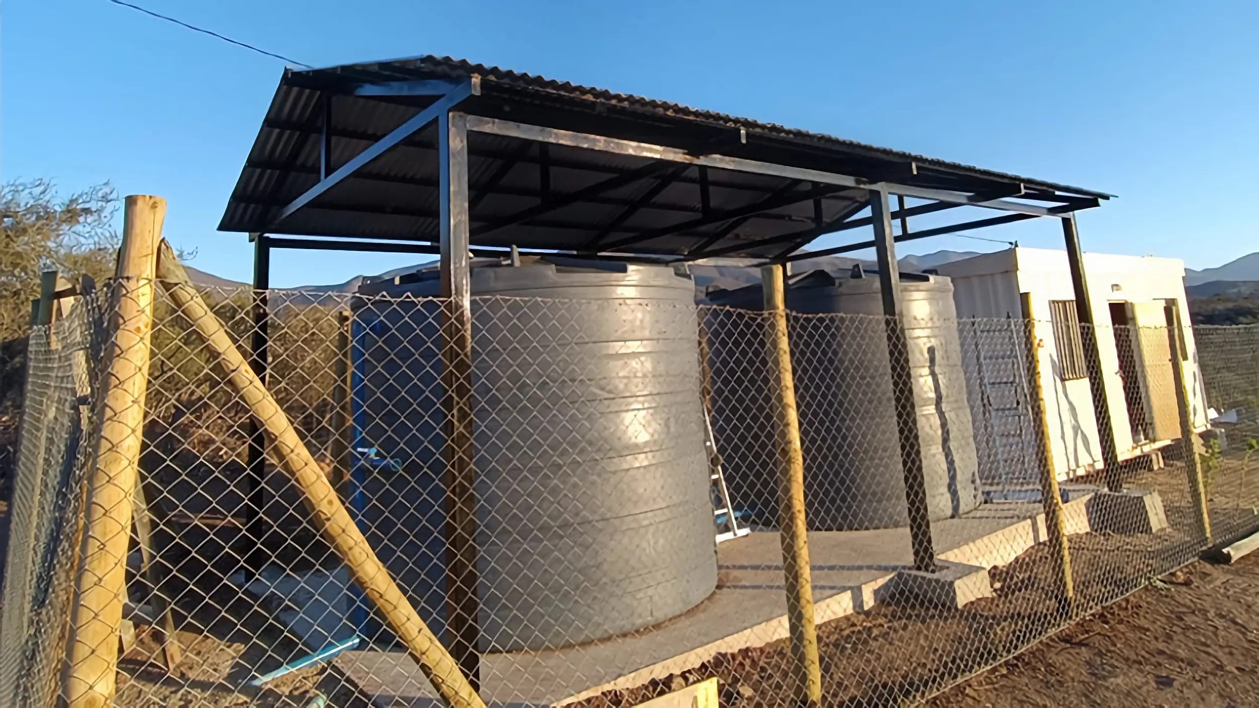 Descripción: Instalación de tabiquería perimetral, suministro e instalación de hojalatería perimetral, puerta de acceso a caseta, estructura de acero (pilares, vigas y cerchas metálicas), empotramiento de pilares, recubrimiento de techumbre, recubrimiento de pintura, excavaciones de fundaciones, poyos de hormigón, suministro e instalación de tapa metálica, mejoramiento de base y pasadas de agua, suministro e instalación de cámara y fabricación machones de hormigón.